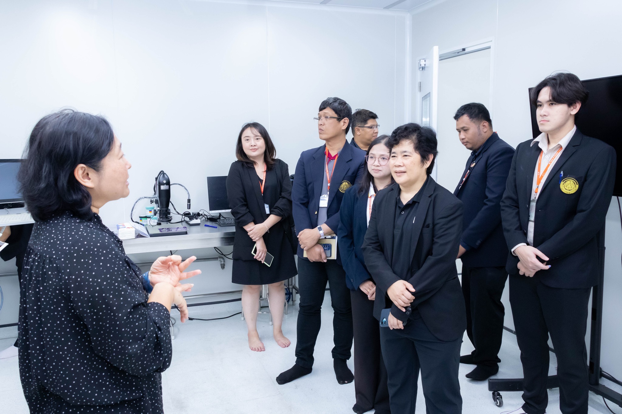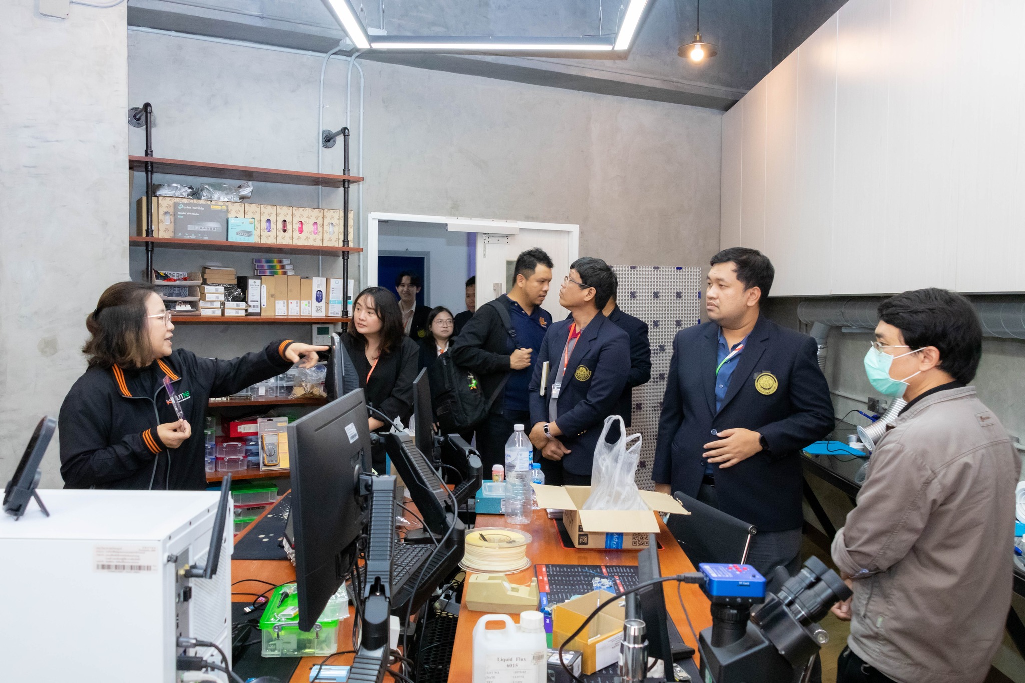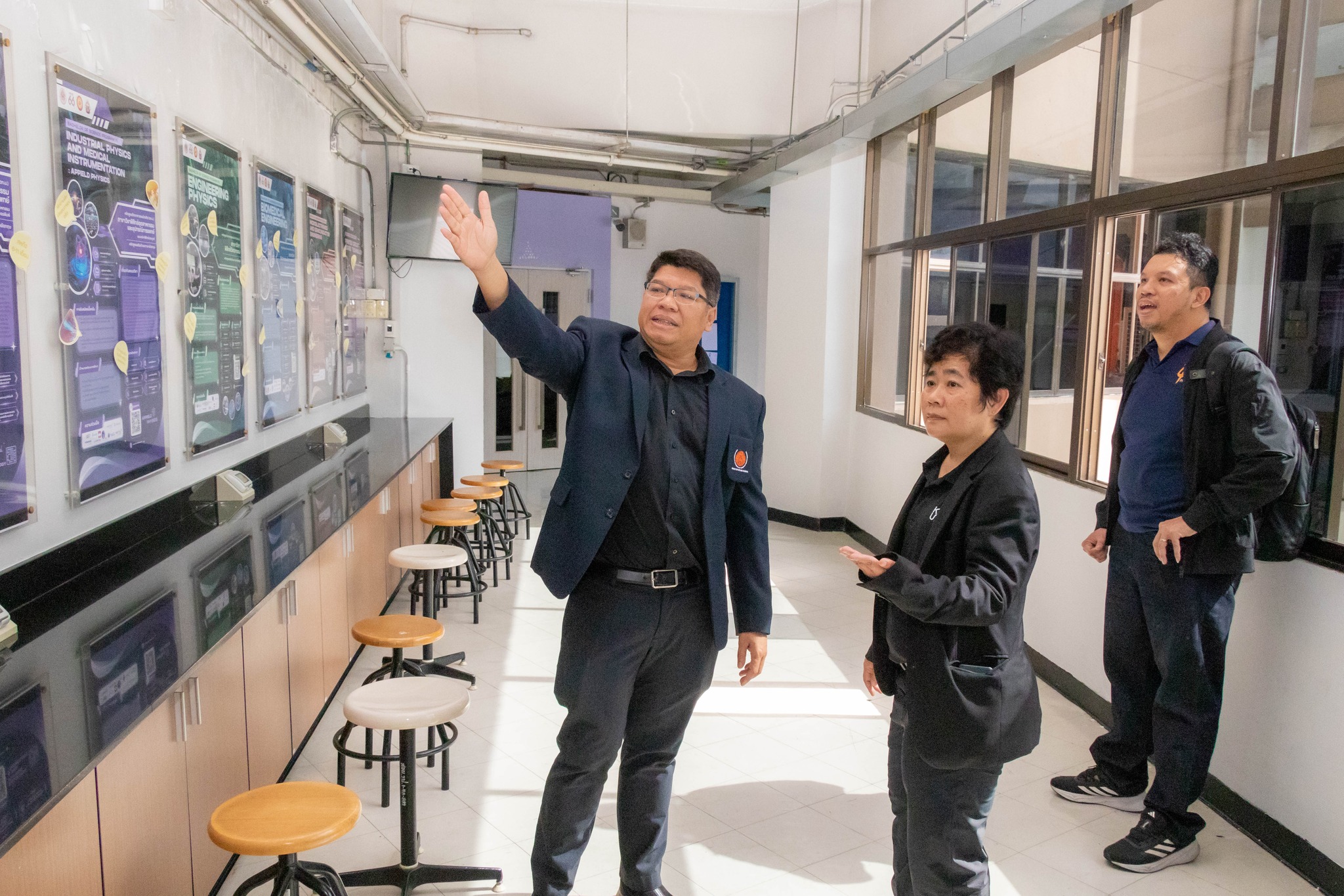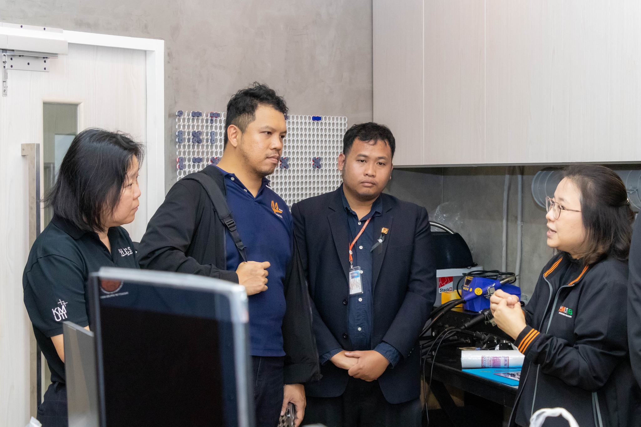 จากนั้น เข้าเยี่ยมชมศึกษาดูงานห้องปฏิบัติการ ได้แก่ ศูนย์เครื่องมือวิทยาศาสตร์และถ่ายทอดเทคโนโลยี SITT ศูนย์ฝึกอบรมด้านเซมิคอนดักเตอร์แห่งชาติ (KMUTNB National Semiconductor Training Center) และห้องปฏิบัติการของภาควิชาฟิสิกส์อุตสาหกรรมและอุปกรณ์การแพทย์
