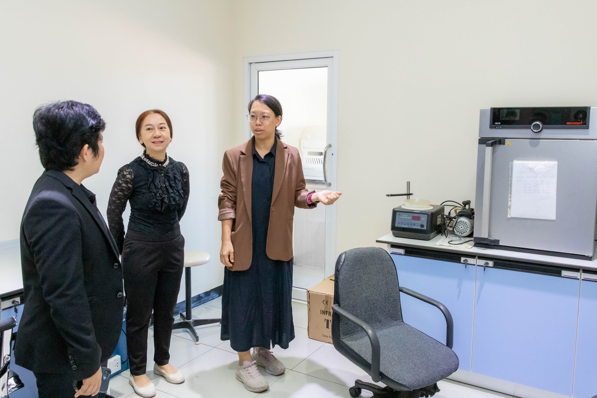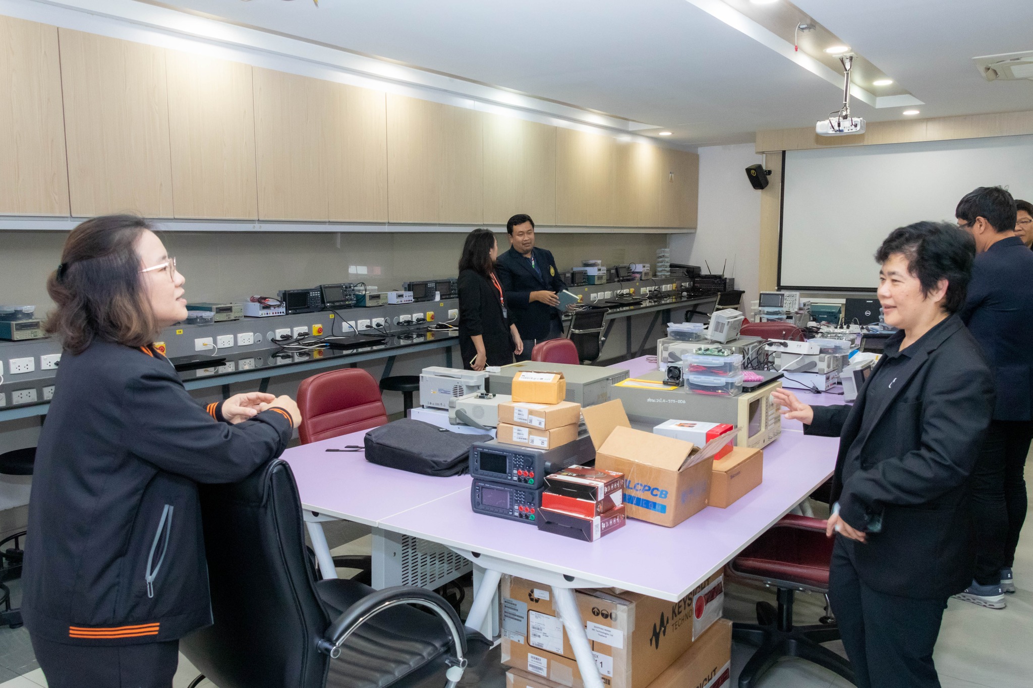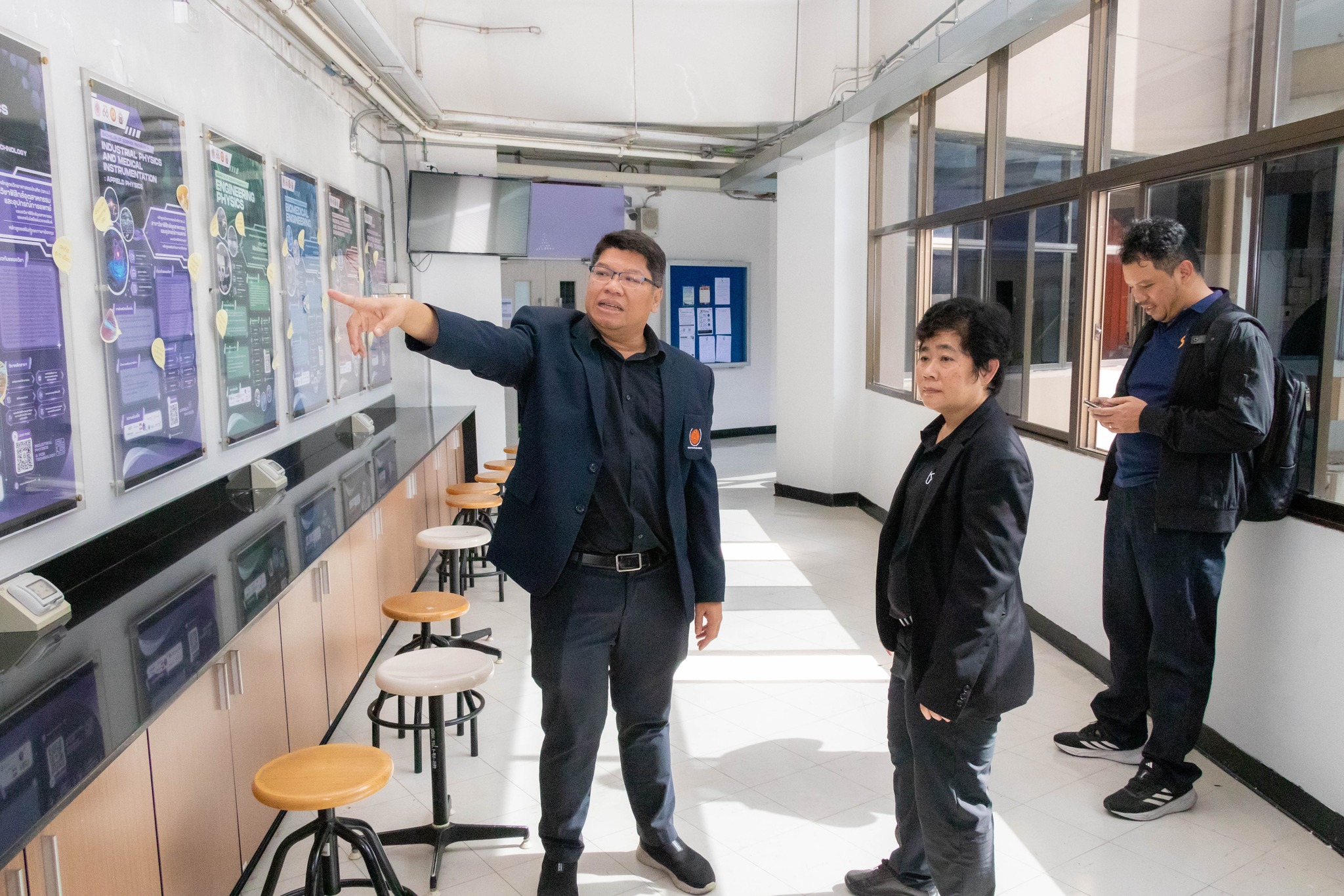 จากนั้น เข้าเยี่ยมชมศึกษาดูงานห้องปฏิบัติการ ได้แก่ ศูนย์เครื่องมือวิทยาศาสตร์และถ่ายทอดเทคโนโลยี SITT ศูนย์ฝึกอบรมด้านเซมิคอนดักเตอร์แห่งชาติ (KMUTNB National Semiconductor Training Center) และห้องปฏิบัติการของภาควิชาฟิสิกส์อุตสาหกรรมและอุปกรณ์การแพทย์