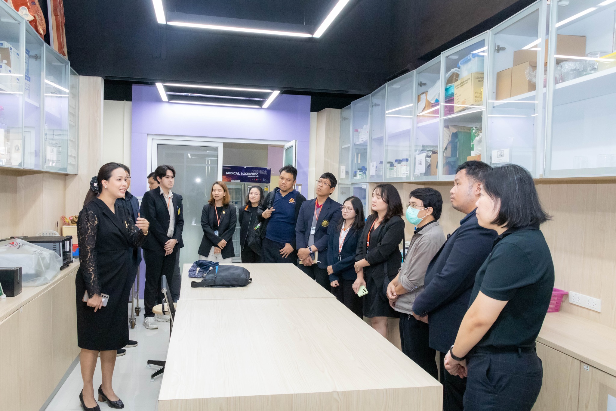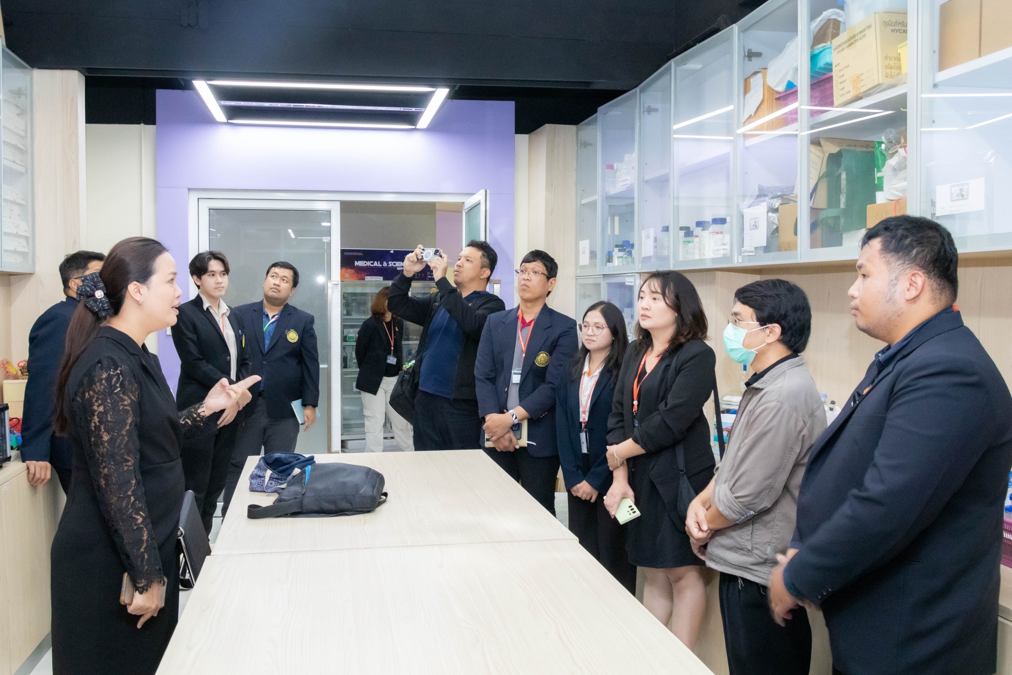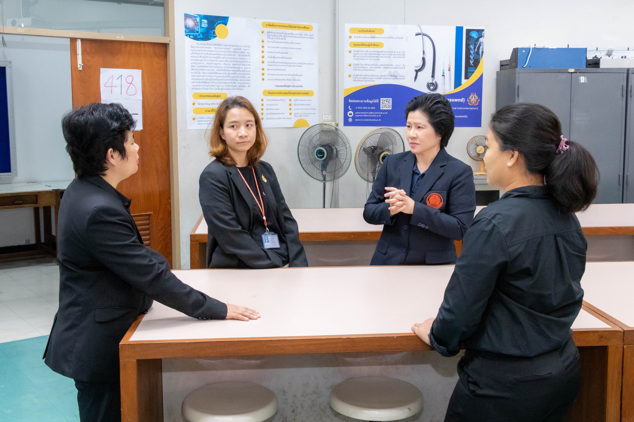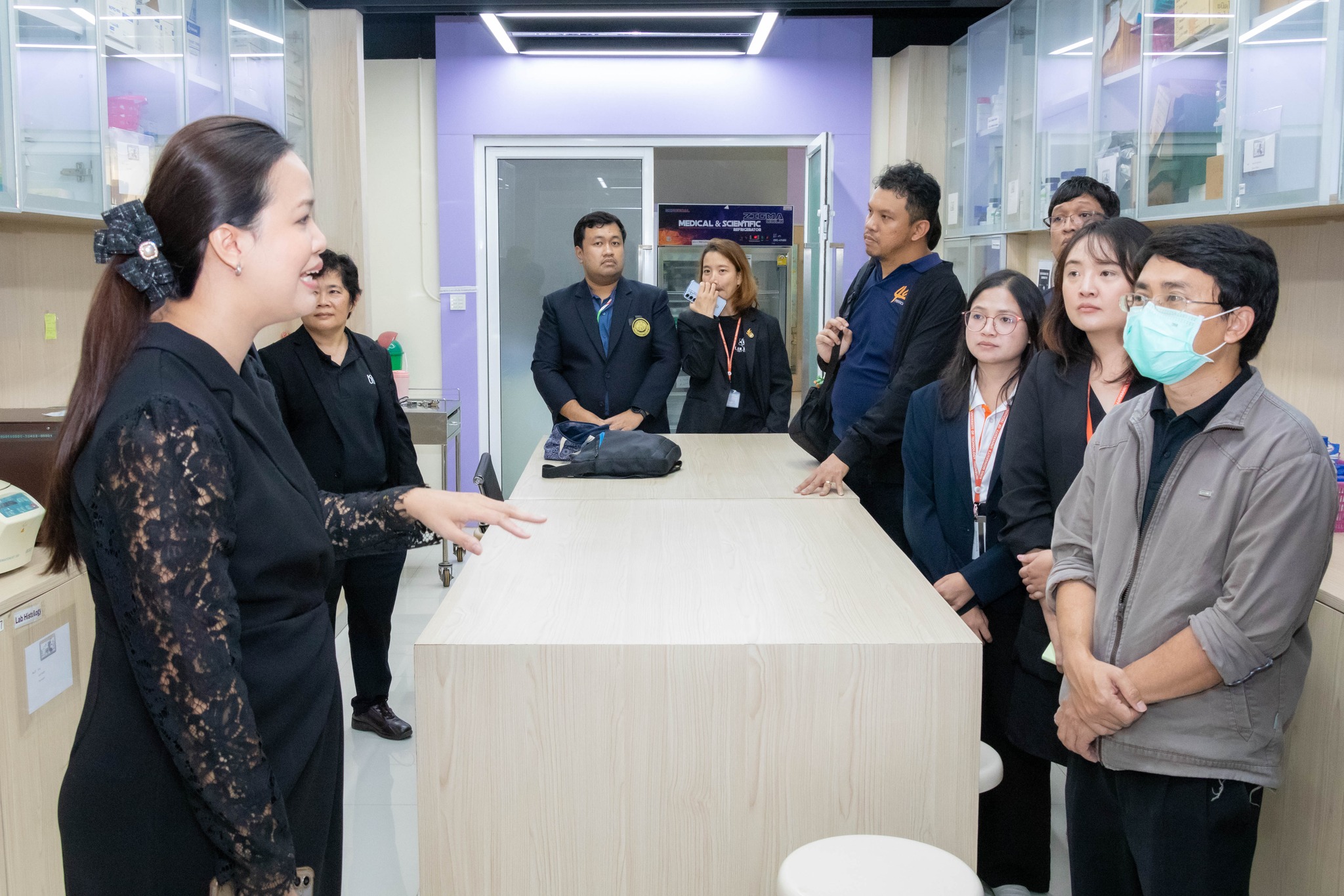 จากนั้น เข้าเยี่ยมชมศึกษาดูงานห้องปฏิบัติการ ได้แก่ ศูนย์เครื่องมือวิทยาศาสตร์และถ่ายทอดเทคโนโลยี SITT ศูนย์ฝึกอบรมด้านเซมิคอนดักเตอร์แห่งชาติ (KMUTNB National Semiconductor Training Center) และห้องปฏิบัติการของภาควิชาฟิสิกส์อุตสาหกรรมและอุปกรณ์การแพทย์