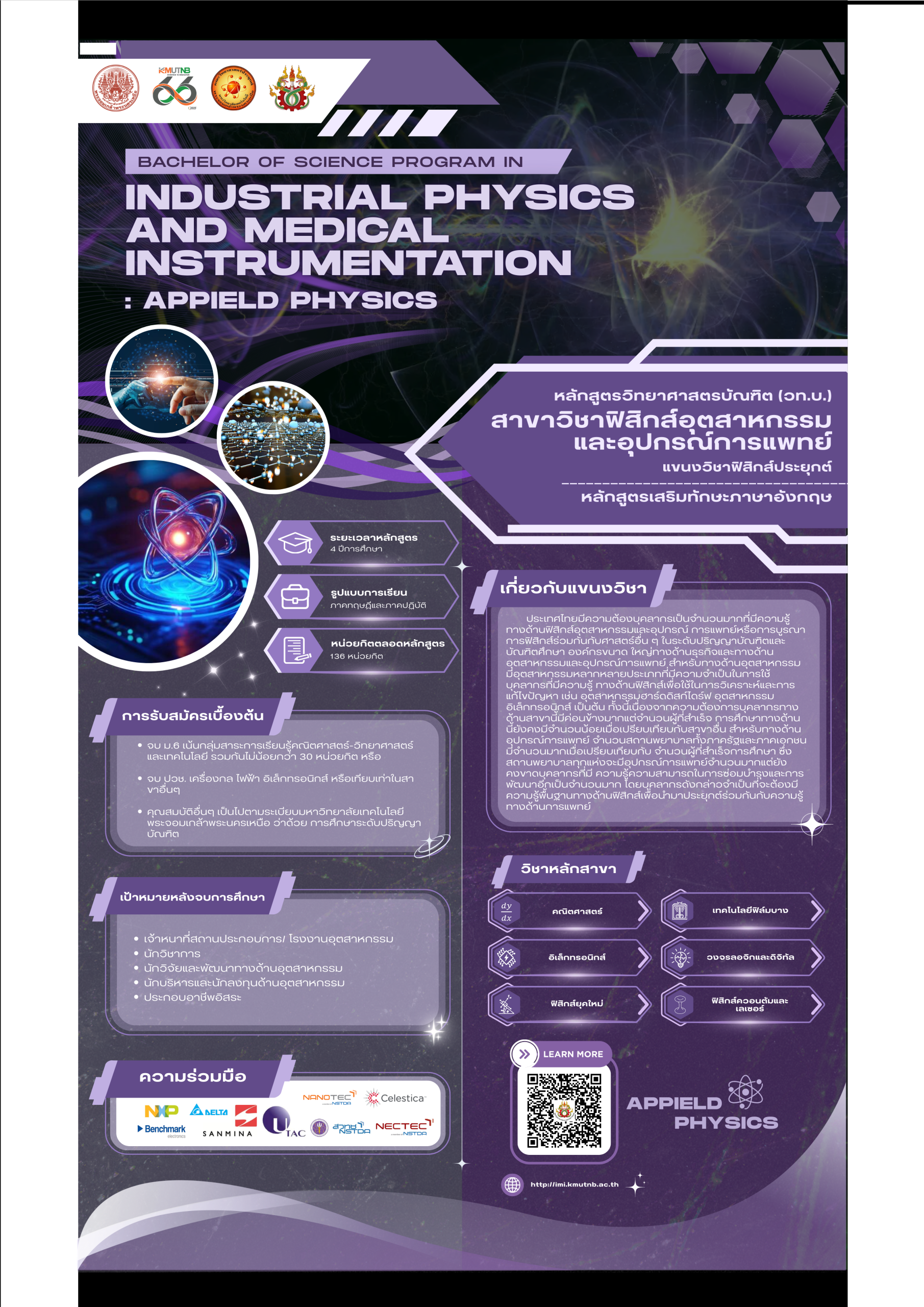หลักสูตร: วิทยาศาสตรบัณฑิต สาขาวิชาฟิสิกส์อุตสาหกรรมและอุปกรณ์การแพทย์ แขนงวิชาฟิสิกส์วิศวกรรม
