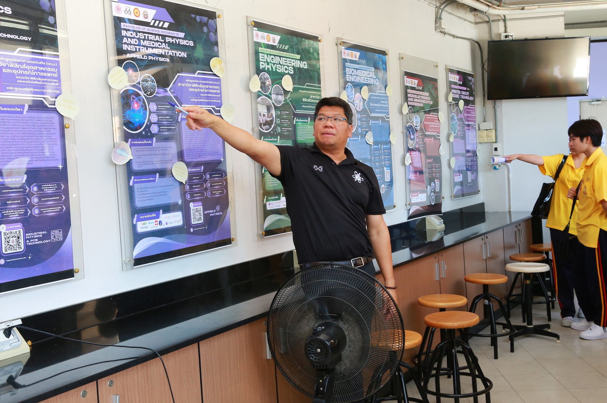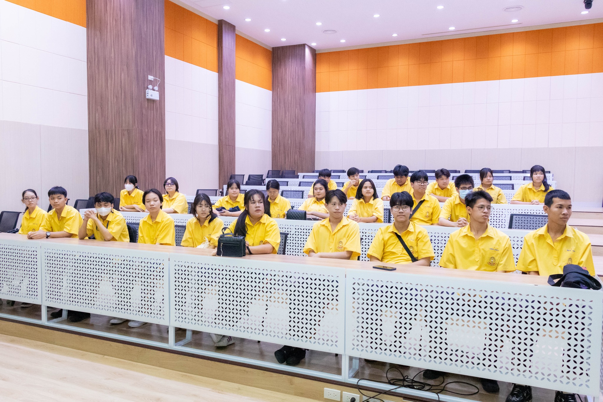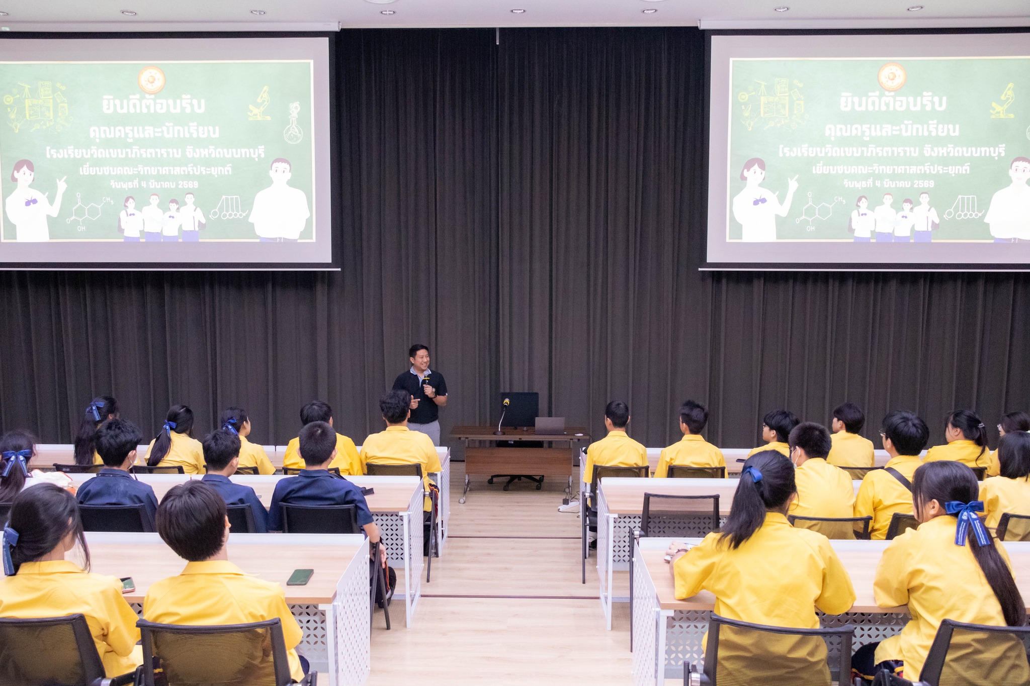 ในการนี้ ผู้ช่วยศาสตราจารย์ ดร.ชัชวาล สิงหะพล รองคณบดีฝ่ายพัฒนาวิจัยและบริการวิชาการ พร้อมด้วย ผู้ช่วยศาสตราจารย์ ดร.เสาวภา ถ้ำสิงห์ นิยมไทย ผู้ช่วยคณบดีฝ่ายวิจัยและนวัตกรรม ให้การต้อนรับคณะครูและนักเรียน พร้อมทั้งแนะนำภาพรวมการจัดการเรียนการสอน สิ่งอำนวยความสะดวก และห้องปฏิบัติการของคณะ เพื่อเป็นแนวทางในการศึกษาต่อในระดับอุดมศึกษา รวมทั้งเปิดโอกาสให้นักเรียนได้เรียนรู้จากสภาพแวดล้อมจริง อันจะช่วยส่งเสริมความเข้าใจเกี่ยวกับสาขาวิชาต่าง ๆ และประกอบการตัดสินใจในการเลือกศึกษาต่อในอนาคต